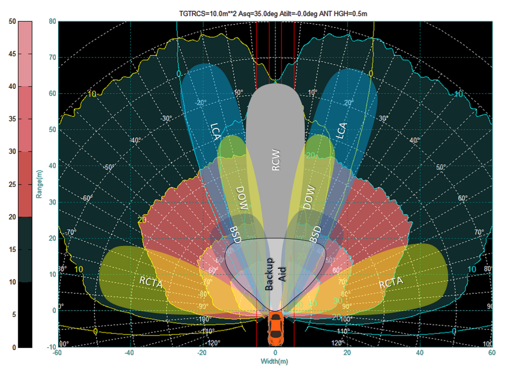 - Function: When the vehicle backward moving out the parking lot, this mode provides alerts of the cross moving target. The vehicle can be stop or moving.
